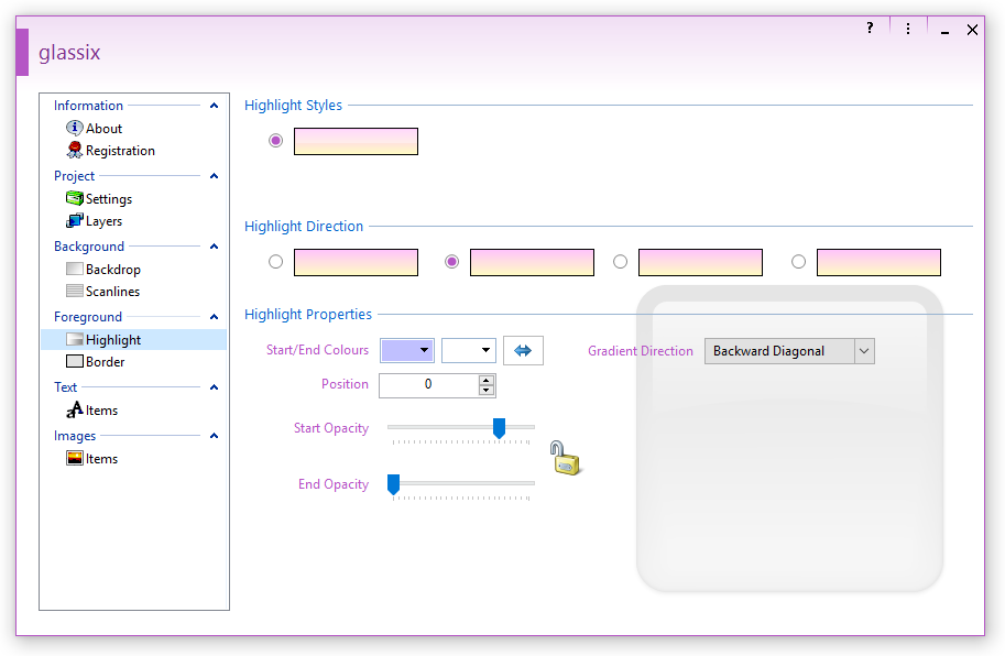 Highlights provide a visual flair to graphics and can also provide a glossy-look.
