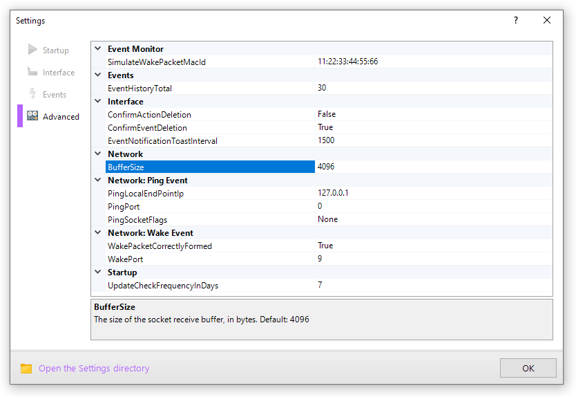 The Advanced tab can be used to set options that are further within the internal workings of Network Trigger; these settings can be ignored, for the most part.