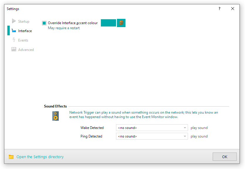 The Settings window allows you to tailor the various aspects of Network Trigger.