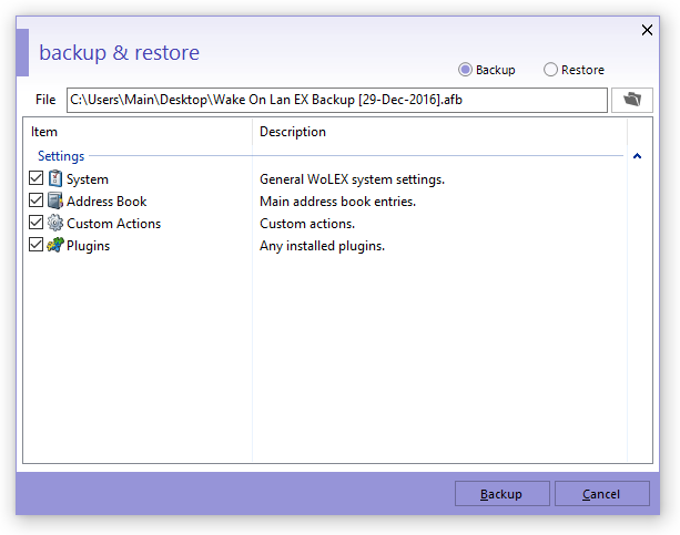 Wake On LAN Ex uses the system's user-configurable accent colour; the screenshots below are taken with the accent colour set to various colours to show how WoLEX uses them for accenting. The accent colour can be overriden to a different colour within WoLEX itself, if required.